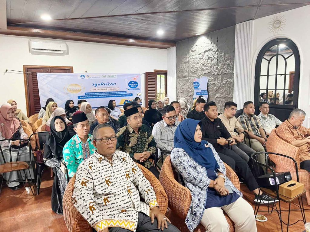 Medan, 15 Januari 2026 – Program Studi Pendidikan Guru Sekolah Dasar (PGSD) Fakultas Ilmu Pendidikan (FIP) Universitas Negeri Medan (UNIMED) menggelar Rapat Persiapan Perkuliahan Semester Genap Tahun Akademik 2025/2026 yang dirangkaikan dengan syukuran atas raihan Akreditasi Unggul, pada hari Kamis, tanggal 15 Januari 2026, pukul 10.00 WIB hingga 13.30 WIB. Kegiatan ini berlangsung di Temui Cafe dan Resto, Jalan Perhubungan No.4, Tembung, Kecamatan Percut Sei Tuan, Kabupaten Deli Serdang, Sumatera Utara.