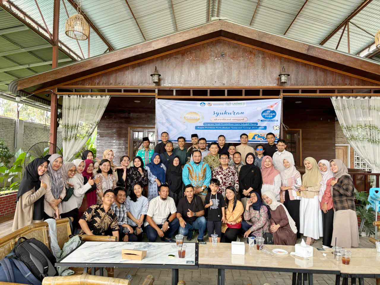 Medan, 15 Januari 2026 – Program Studi Pendidikan Guru Sekolah Dasar (PGSD) Fakultas Ilmu Pendidikan (FIP) Universitas Negeri Medan (UNIMED) menggelar Rapat Persiapan Perkuliahan Semester Genap Tahun Akademik 2025/2026 yang dirangkaikan dengan syukuran atas raihan Akreditasi Unggul, pada hari Kamis, tanggal 15 Januari 2026, pukul 10.00 WIB hingga 13.30 WIB. Kegiatan ini berlangsung di Temui Cafe dan Resto, Jalan Perhubungan No.4, Tembung, Kecamatan Percut Sei Tuan, Kabupaten Deli Serdang, Sumatera Utara.